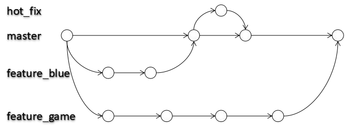为了不影响较短周期的开发工作,一般把中长期开发模块,会从开发分支中独立出来。开发完成后会合并到开发分支。