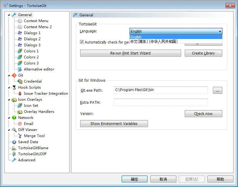 4.右键 →tortogit→setting,把 language 项改为中文,点击确定就可以了