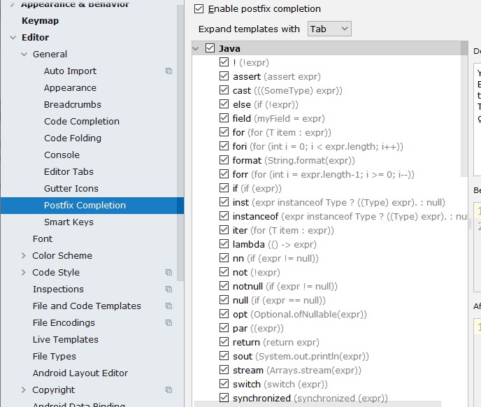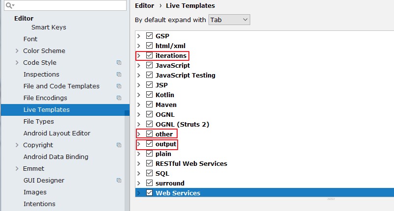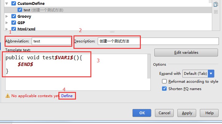 点击模板页面最下方的警告,来设置将模板应用于那些场景,一般选择 EveryWhere-->Java 即可