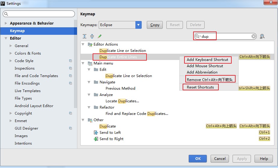 | Ctrl+D | 复制光标所在行的内容,插入光标位置下面 |