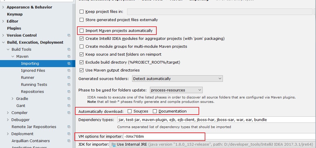 VM options for importer:可以设置导入的 VM 参数。一般这个都不需要主动改,除非项