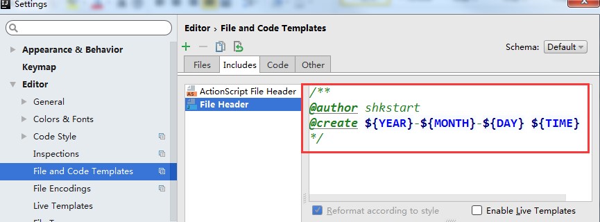 ${NAME}:设置类名,与下面的${NAME}一样才能获取到创建的类名