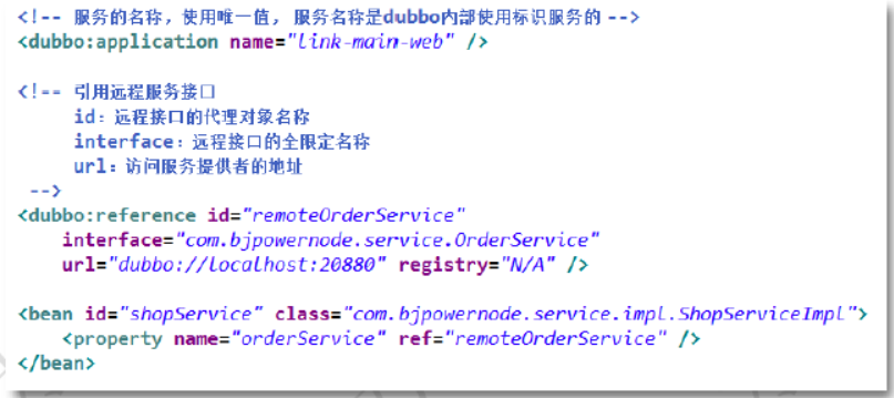 点对点的直连项目:消费者直接访问服务提供者,没有注册中心。消费者必须指定服务提供者的访问地址(url)。