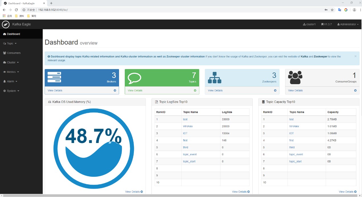 | ###################################### # multi zookeeper&kafka cluster list ###################################### kafka.eagle.zk.cluster.alias=cluster1 cluster1.zk.list=hadoop102:2181,hadoop103:2181,hadoop104:2181 ###################################### # kafka offset storage ###################################### cluster1.kafka.eagle.offset.storage=kafka ###################################### # enable kafka metrics ###################################### kafka.eagle.metrics.charts=true kafka.eagle.sql.fix.error=false ###################################### # kafka jdbc driver address ###################################### kafka.eagle.driver=com.mysql.jdbc.Driver kafka.eagle.url=jdbc:mysql://hadoop102:3306/ke?useUnicode=true&ch aracterEncoding=UTF-8&zeroDateTimeBehavior=convertToNull kafka.eagle.username=root |