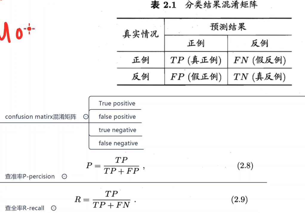 查准率和查全率:(样本分布不均衡,使用错误率不准确了)